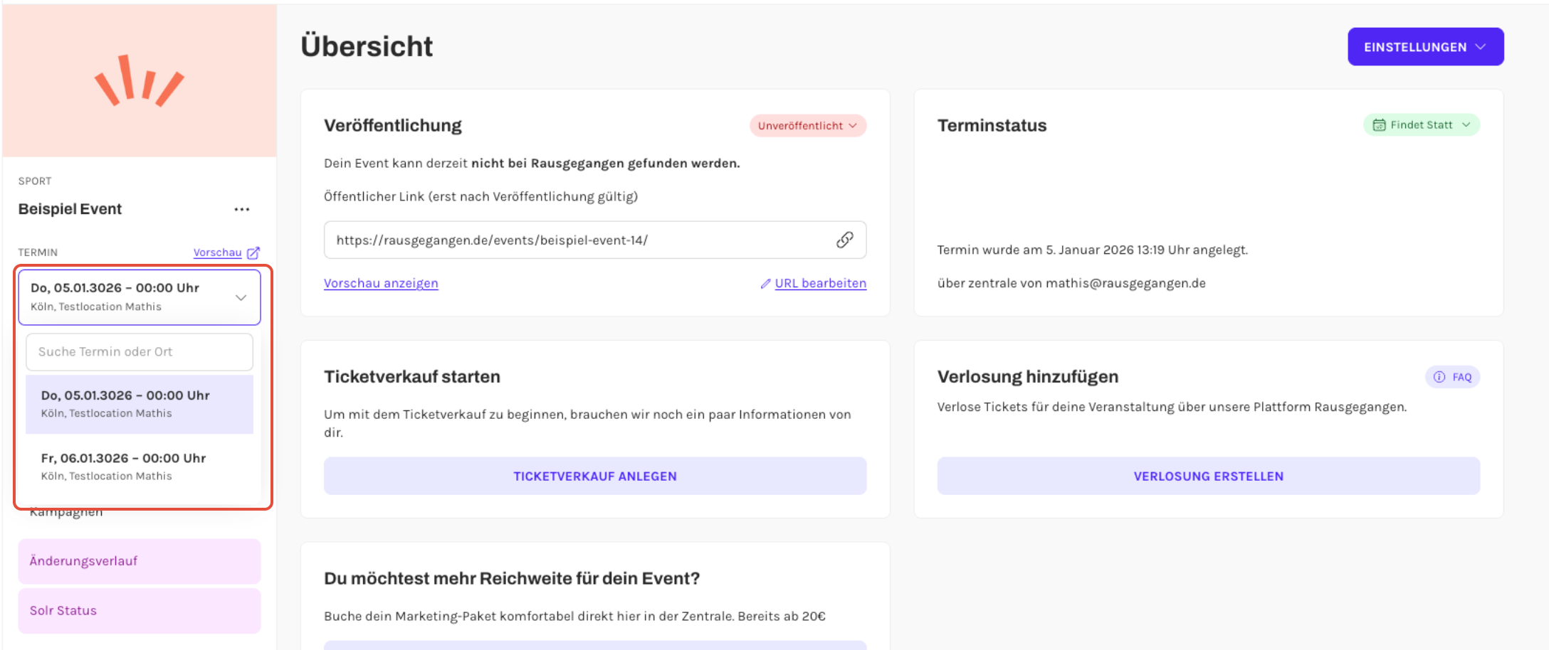 Wenn du dein Ticketing über Rausgegangen abwickeln möchtest, mach an dieser Stelle bei "Ticketing über Rausgegangen erstellen" weiter.