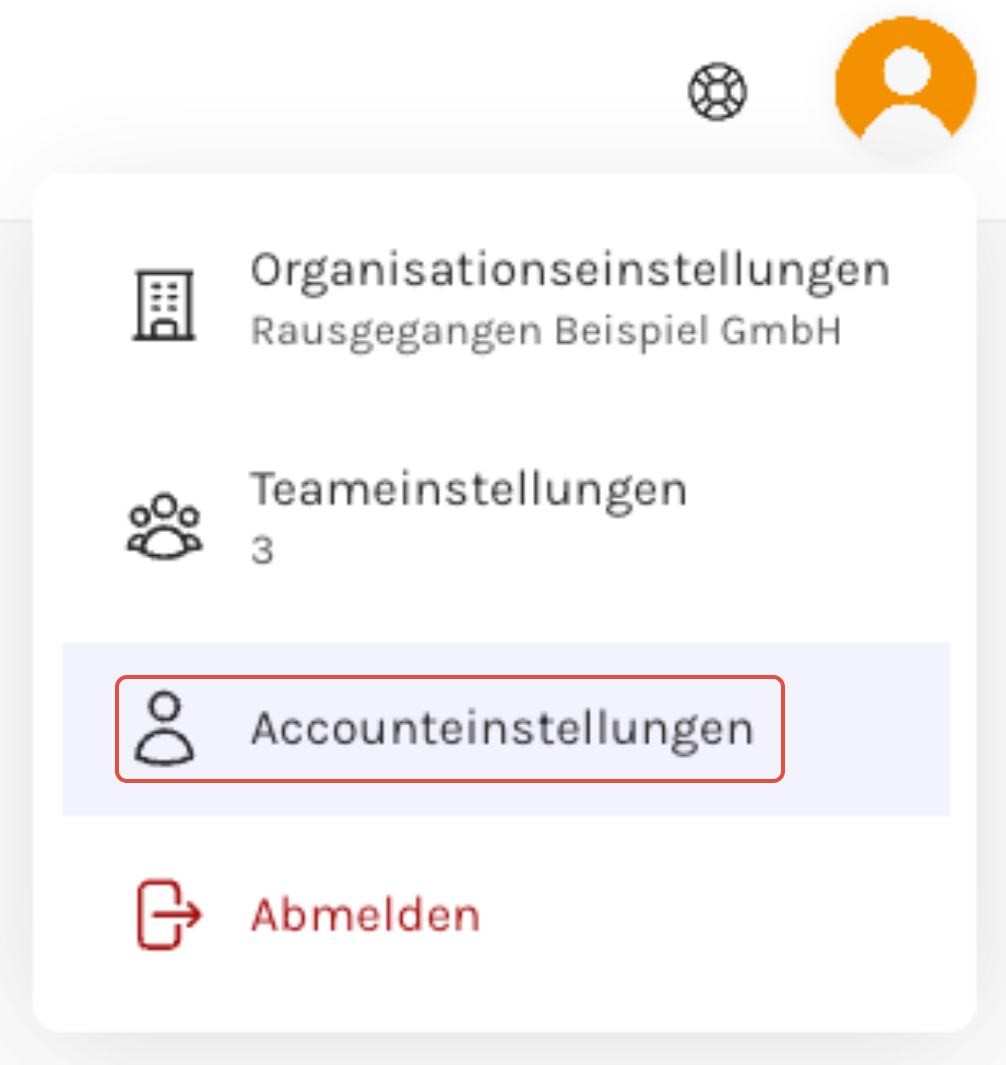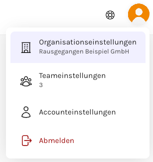 Klicke oben rechts auf dein Profilbild und wähle Organisationseinstellungen.