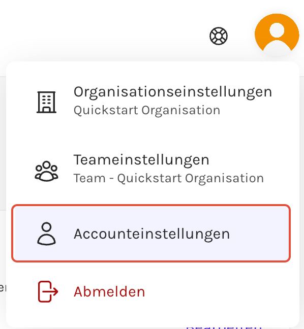 Der Link aus dem Popup bringt dich in deine Organisationseinstellungen in den "Konto" Reiter.
